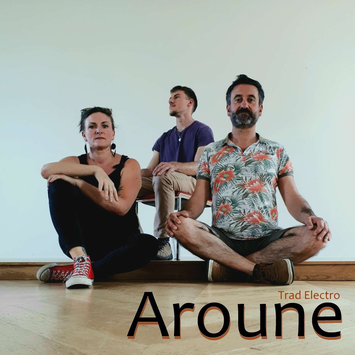 Les trois membres de AROUNE: Claire Bard (violon, chant, pieds, effets), Olivier Gitenait (cornemuses, saxophone, chant, effets), Elouann Pannetier (Accordéon, Synthétiseur, chant), se connaissent depuis longtemps et ont déjà fait danser sur les parquets à travers de nombreuses formations.